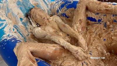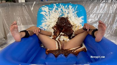 Celeste is exposed and destroyed with pies, marshmallow cream and chocolate syrup.
