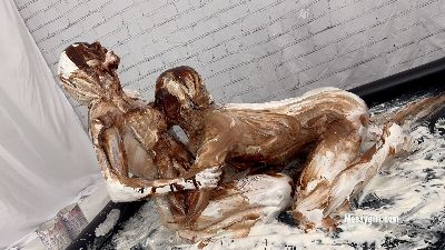 Zoey and Santana are transformed into naughty gooey sluts when they cover each other in marshmallow cream and chocolate syrup.