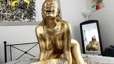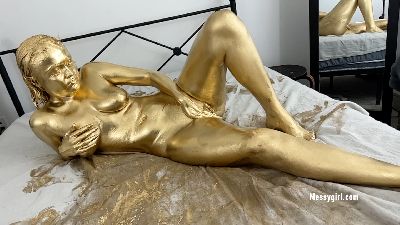 Young 19 year old Cassandra shows it all as she covers herself head to toe in gold paint.