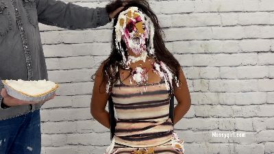 Dakota is a naughty school girl who loves to get pied hard. So she is up against the wall for her pie onslaught and she takes them like a pro.