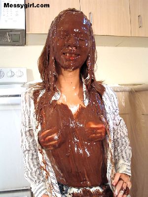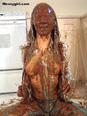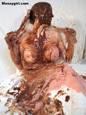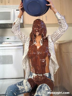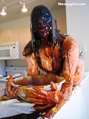 Allison is in her corset, garters, stockings and heels as she is covered in pies, slime and chocolate batter. She goes topless for the first time!