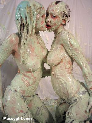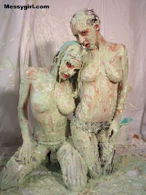 Sasha and Kim are at it again! Both girls are nude as they cover each other in slime.