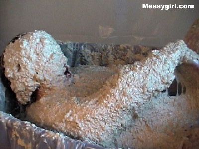 More from Liz's oatmeal bath. Watch as she slops around in 35 gallons of the sticky stuff!