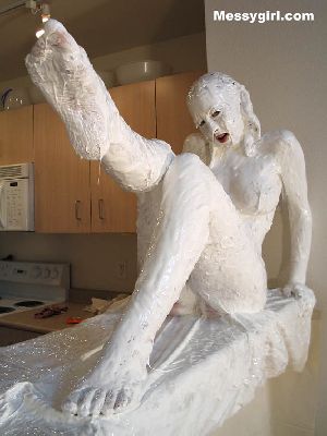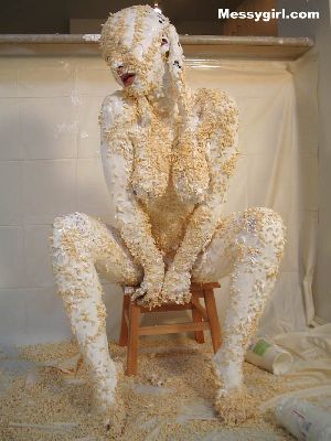 Lexi is covered head to toe in sticky marshmallow cream and topped off with rice crispies.