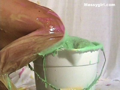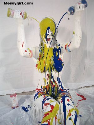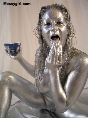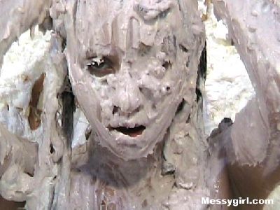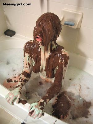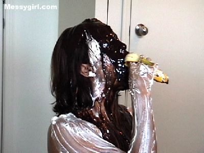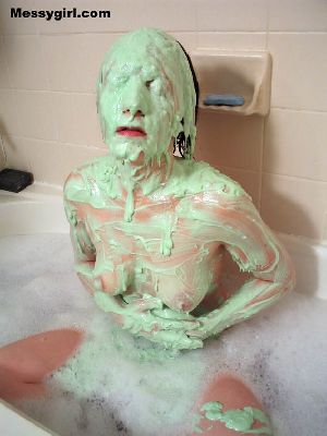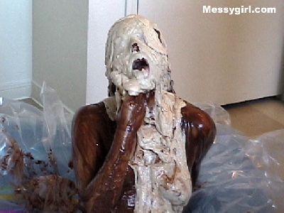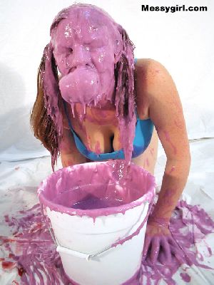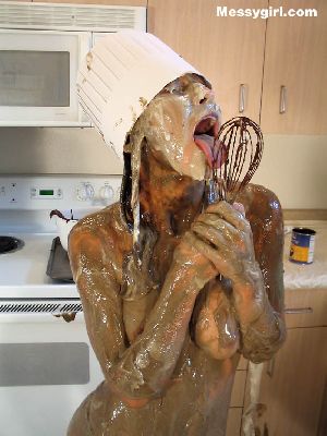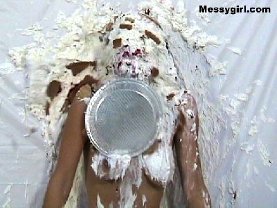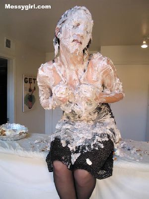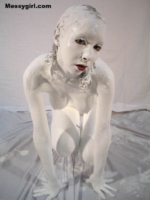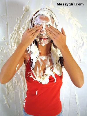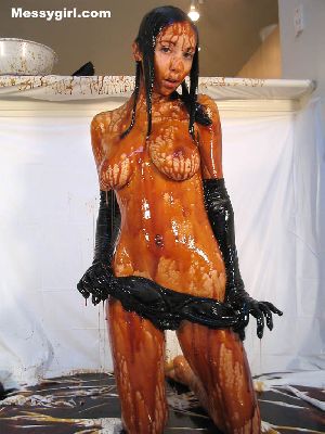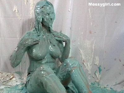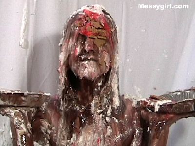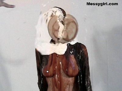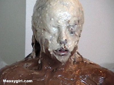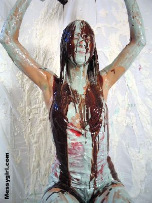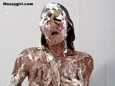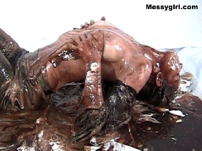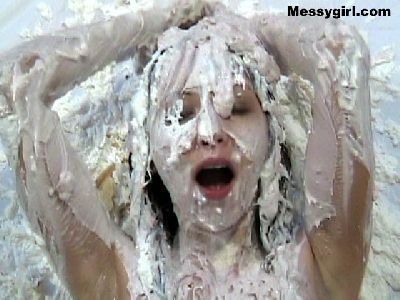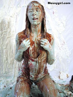 Michelle gets the full messygirl treatment! She starts out in her blouse, skirt and stockings and finishes topless and slathered head to toe!