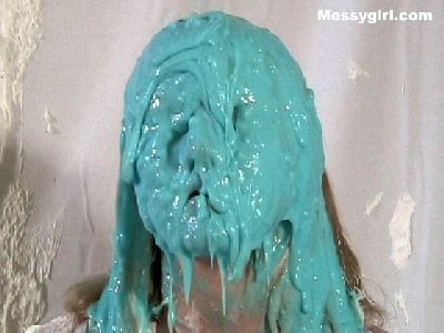 Amber gives newcomer Madison the messygirl spa treatment. Madison is covered in pies, chocolate batter and blue slime. Amber also joins her for some messy play time!