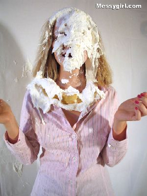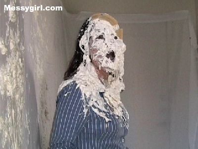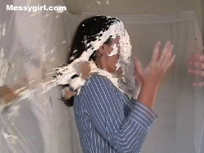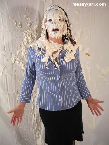 Cindy and her boyfriend wanted to post pics on our Messy Wives and Girlfriends section, but asked us to do the wamming as he watched. Needless to say he enjoyed what we did to her as we creamed her with over a dozen pies and covered her in a gallon of slime.