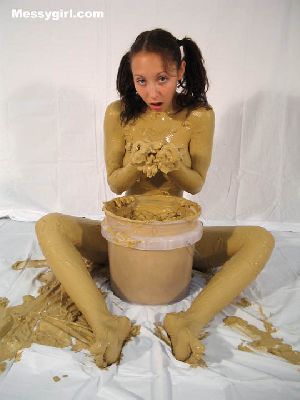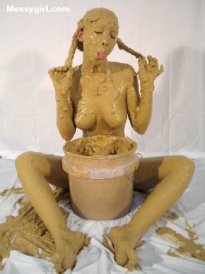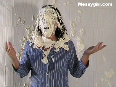 Messygirl starts out in her silk robe, black panties and bra. She is hit with cream pies and chocolate syrup poured over her pretty face.
