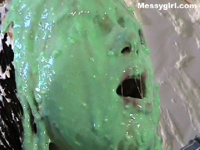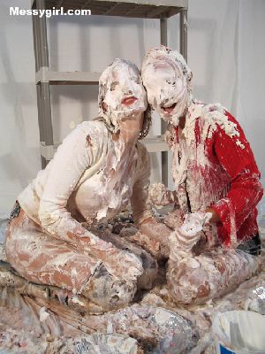 Raven makes Amber her messy sub girl. Amber has her hands tied behind her back as she receives her messy onslaught with pies, slime, melted ice cream and a large sheet cake. Raven shows no mercy on poor Amber as she is coated head to toe in the slop. Amber is set free so she can give Raven a taste of her own medicine. Both girls get very messy and naughty!