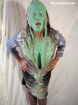 More of Linda pied and slimed as the bitchy business woman. She had it coming to her, but enjoyed it so much she did more to herself.