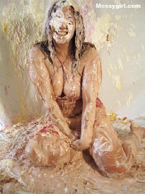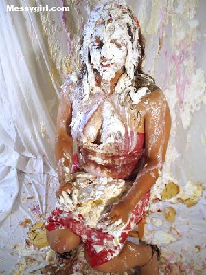 Liz starts out in her sexy silk blouse, mini skirt, stockings and heels. She first gets plastered with pies followed by a sliming in chocolate and pancake syrup. Liz takes off the blouse as she rolls in the mess on the floor. She then goes nude for more pies and pie sitting. Liz at her messy best!