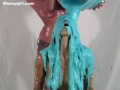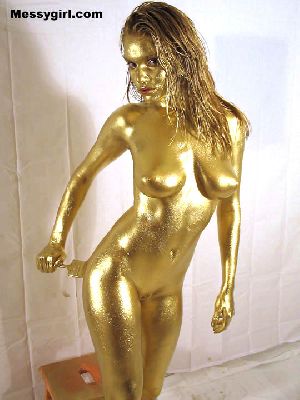 Liz gets artsy, as she is covered head to toe in gold paint. The transformation is breath taking as she is turned into a sexy living work of art. Then is defaced with a bucket of slime, but not to worry, it adds to the transformation into a living work of art, messygirl style.