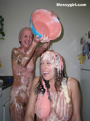 Part two of Lexi and Liz slopping it up in their jeans and summer tops. Both girls make sure the other is covered head to toe in messy pies, slime, syrup and brownie batter. They even give each other a nice pie to the ass before they playfully wrestle in the slop on the floor. Messygirls having a messy good time!