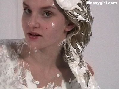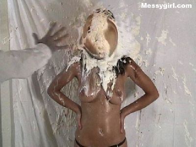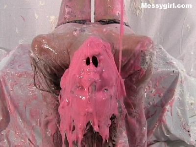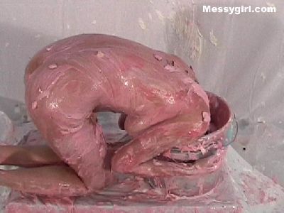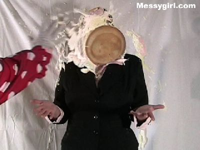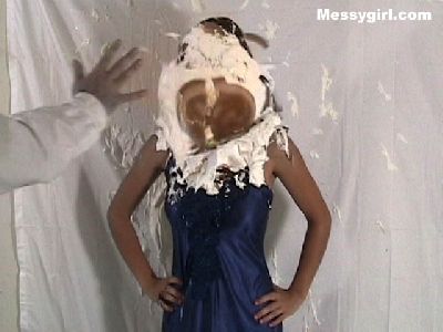 More from Liz's messy bad girl shoot. It's Liz at her messy best! She is pied, slimed, head dunking and pie sitting! Watch her as she takes the pies and slime upside down!