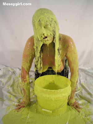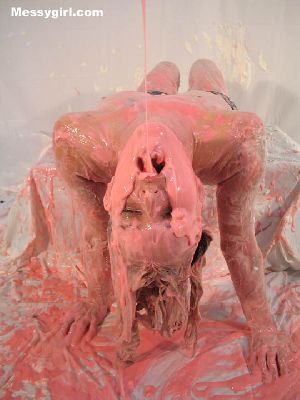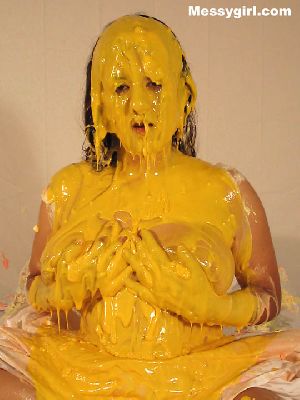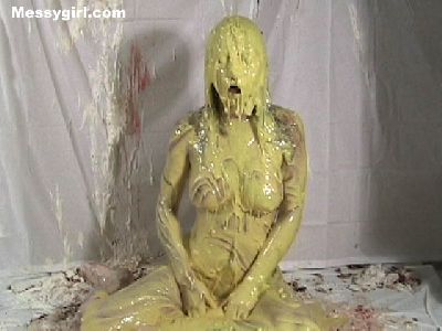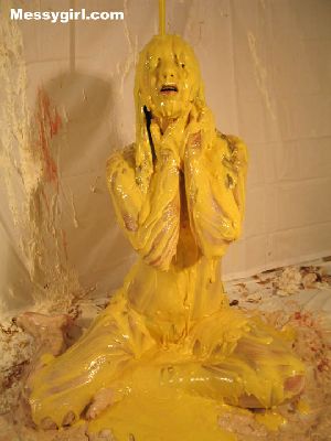 Lexi is pelted with sloppy pies wearing her sexy nightgown. She takes if off for more pies and gallons of yellow slime. This is Lexi at her messy best!