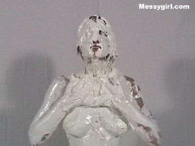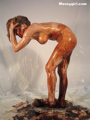 Liz is in her thong bikini as she covers herself in sticky marshmallow cream. She goes nude to cover all the other clean areas before a gallon of chocolate syrup poured on her. A very erotic transformation!