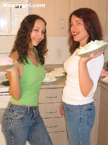 Lexi and Sara meet for the first time for some extra messy pie and slime play. Both girls end up topless and coated in chocolate!