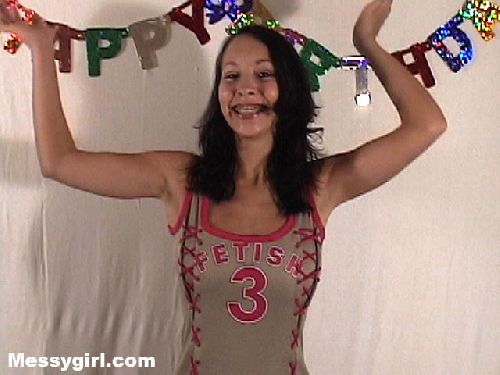 More from Lexi's 21 pie birthday celebration! She even makes sure to cover herself head to toe with the pie mess from the floor.