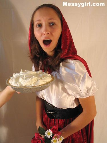 Lexi gets messy for the Big Bad Wolf! She starts out in her cute dress and red hood, but ends up topless and covered head to toe in pies and slime.