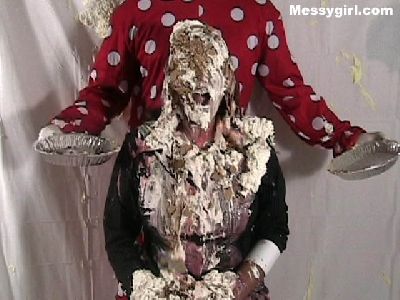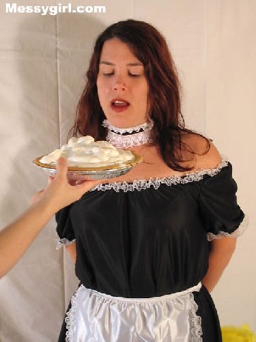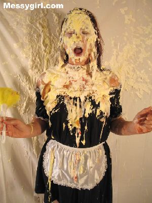 Linda is pied and has pudding poured over her head wearing her maid dress. Sara walks in and Linda makes sure she gets the same messy treatment.