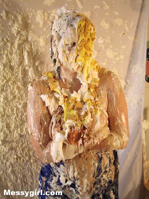New messygirl Katie gives it her all in her first messy shoot. Total head to toe coverage as well as pie sitting! She starts out in business attire and ends nude and coated in slop!