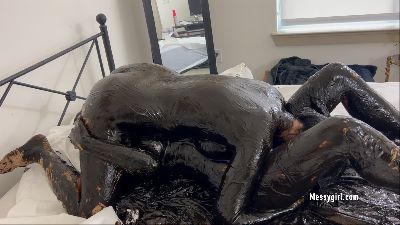 Scarlett goes WAM extreme as she covers her sexy nude body in black grease. She shows it all as she slathers herself. Hot!
