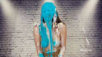 Young 18 year old WAM virgin gets the Messygirl treatment from Penelope. She end up totally covered and topless.