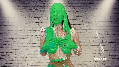 Adorable Dakota is in the inflatable chair and ready to get covered in 10 gallons of gooey glop. She starts out in a dress with no panties and ends up nude and covered head to toe in the sticky glop. She even plays with her gooey pussy.