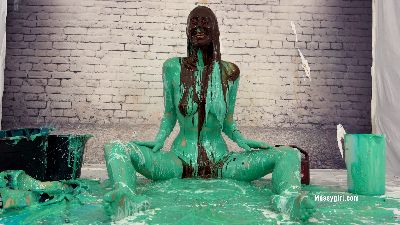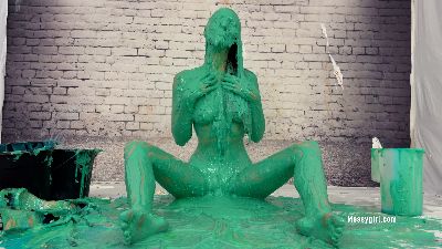 Adorable 19 year old Dakota does her first gold paint shoot. She is more than happy to show off every inch of her body as she covers herself. The paint collects in a pool underneath her and eventually goes inside her pussy and asshole, causing wet queef noises. Hot stuff!