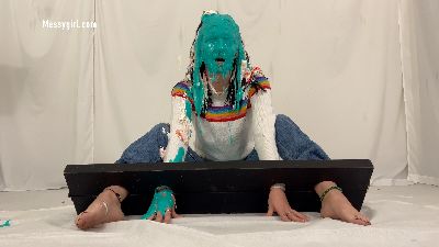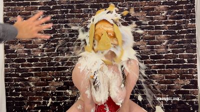 Young 19 year old Cassandra does her first WAM shoot. She is naturally nervous as she awaits her messy onslaught. We don't hold back as she is unmercifully pied and slimed. A Messygirl star is born!