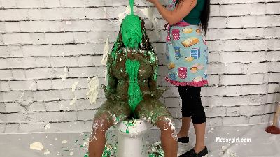 Amber and Stephanie order the special at a fancy restaurant. When they are served the first course, they relized they made a mistake. Both girls are destroyed with pies, cakes and batter slime.