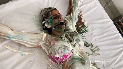 Payton does her first every WAM shoot. She starts out all cute and innocent as she is pied for the first time, but she soon becomes aroused and is transformed into a nude and sloppy Messygirl.