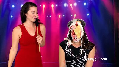 Michelle shows off her flexibility skills as she gets pied and slimed