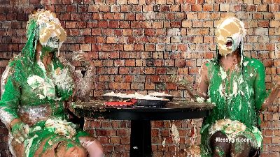 Zoey and MewMew go at it hard with the pies