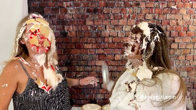 Zoey and MewMew get into an all out pie fight while waiting in the dessert line. Both girls don't hold back with the pie hits.