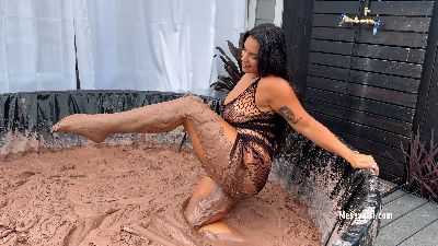 Sexy Carmilla gets down and muddy for the first time. She starts out in a sexy dress and ends up nude and covered head to toe in thick creamy mud.