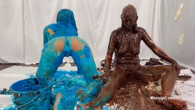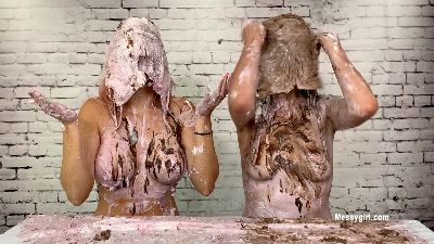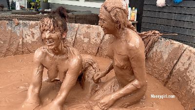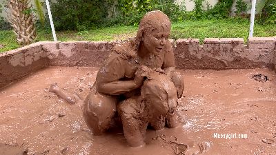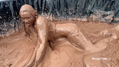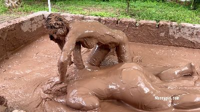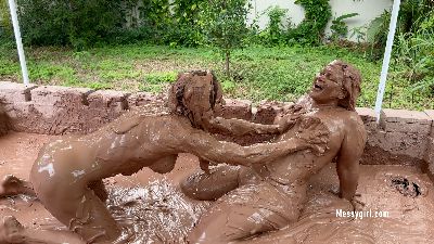 Sexy Euro girls Anastasia from Italy and Gigi from Turkey get into the mud pit for a playful wrestling match. They start out in sexy evening gowns and end up muddy head to toe and nude.