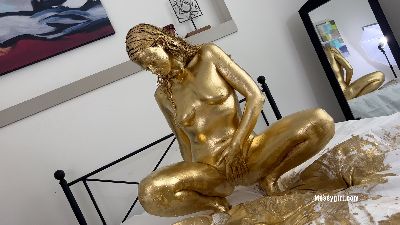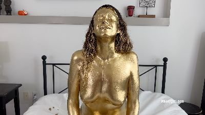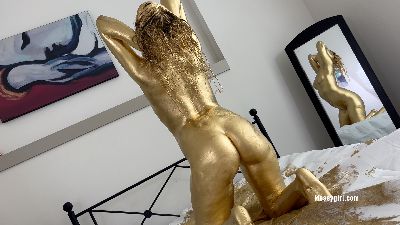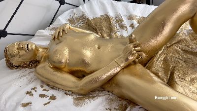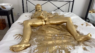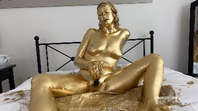 Young 18 year old Tori does her first hardcore shoot. She covers herself in gold paint and uses a vibrator on her pussy.