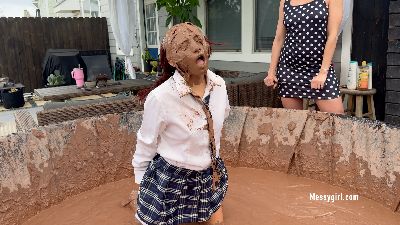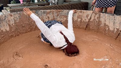 Schoolgirl Celeste is punished in the mud for chewing gum in class