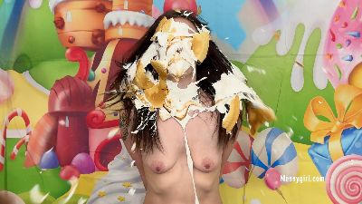 Anastasia is more than happy to volunteer for a charity event. When she arrives she finds out she is a human target at the pie booth. She is topless and has PIE ME written across her tits. She ends up being destroyed with pies!