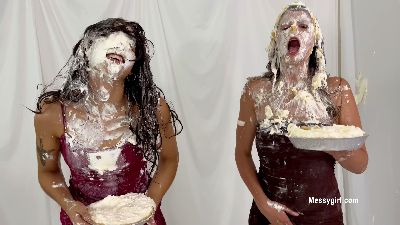 Zoey and Cadence Lux get into a tit for tat pie fight