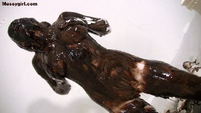 Amber is the first contestant of the Messygirl Extreme Games. She has to draw from a hat that contains pieces of paper with a dollar sign and the letter M for mess. Each dollar sign is worth $25, but if she picks the letter M, she will suffer a messy fate. She starts out well, with two dollar signs in a row, but then the first M is picked, and she gets a pie to the face. She suffers the same fate with various messes, such as beans, tomato soup, custard, flour and even treacle. She is still winning, but getting destroyed at the same time. Then she has to decide if she wants to go double or nothing. She takes on the bet, but loses, and now must suffer a sloppy humiliation. She is now nude and in the ankle stocks, with the force feeder funnel in her mouth. Next comes the slop mixture poured over her head and down her throat. Poor Amber sounds like a backed up sink from all the gurgling noises she makes.