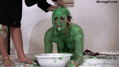 Amy gives newbie Alana her Messygirl initiation. Amy doesn't hold back as she destroys Alana with pies, batter, slime and extreme head dunking. Alana is transformed into an unrecognizable sexy blob by the time Amy is done with her.