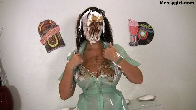 Sexy fetish model Sarah Brooke does her first WAM shoot for us. She plays a customer at a restaurant and wants to see the dessert tray. She can't make up her mind what she wants. She then says she wishes she could sample a bit of everything. Well, that sets off a barrage of pies, cakes, batter, creams, chocolate to her face and over her head. Her comedic reactions throughout the onslaught are priceless.