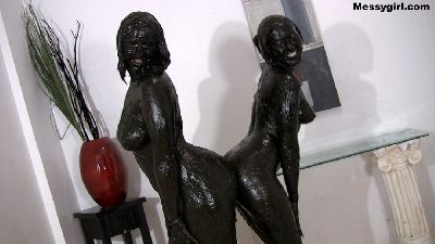 Penelope talks Kylie into doing some extreme wam with black grease and oil. Both girls are nude as they playfully start to smear the grease on each others bodies.Total head to toe coverage for both girls.