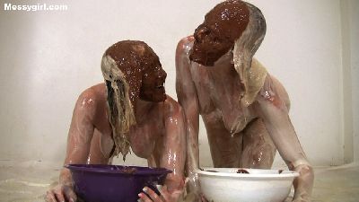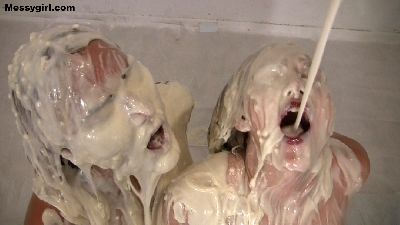 Amy and Vika are in panties as they look up at the camera and asked to be slimed. Once the slime hits their faces, things get hot. They start to make out as the cream slime pours over them. They make sure to get it in their mouths, so they can give each other extra sloppy kisses. Then the girls start to play in the slime on the floor. Both girls get very close and sensual as they do this. As it turns out, both girls like it rough, so there is lots of bitting, hair pulling, spanking and titty grabbing between the two. Then the girls dunk their faces into large bowls of chocolate and continue their hot girl on girl action. It's Vika like you never seen her before.