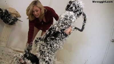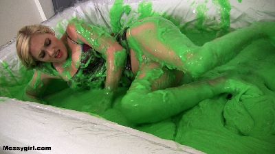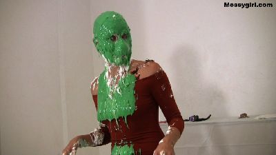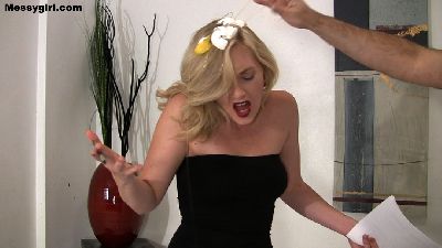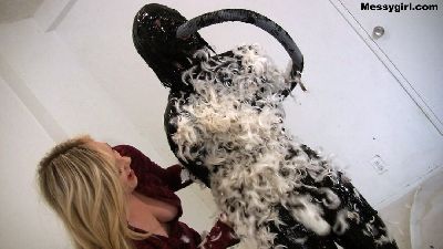 Amy has hired Vika to help her test the durability of novelty gag gifts. Amy wants to see if they will hold up to messy pies and slime pours. So poor Vika has to endure the humiliation of being a messy guinea pig.