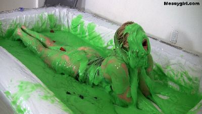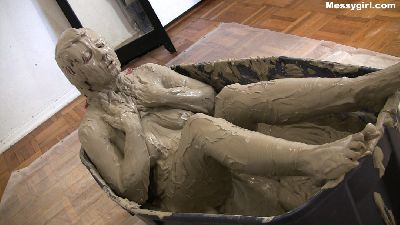 Alternative model XlcrMoon returns and this time she is covered in thick clay. She starts out in a bikini as she steps into the large tub of clay. XlcrMoon is a mud virgin, so her reactions are priceless as she discovers the clay sensation for the first time. Total thick coverage.