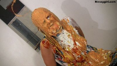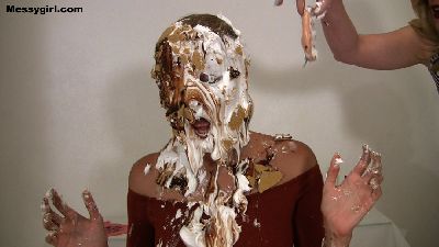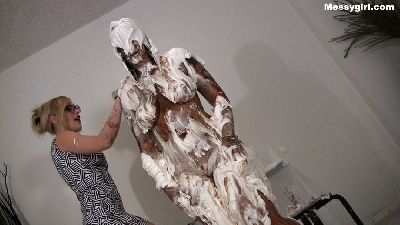 A helpless Vika is nude and tied spread eagle, with a ball gag in her mouth. While she is in that position, she then is pied hard in the face. Since she is unable to wipe, the pie slop slides down to her exposed pussy. She is then untied and allowed to play in the mess for your viewing pleasure. Hot stuff!