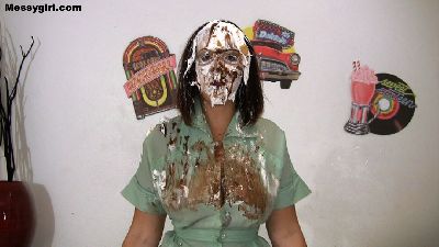 Busty Waitress Jacy is destroyed with pies and slime